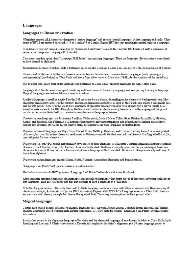 Languages Languages At Character Creation Accent www.scribd.com