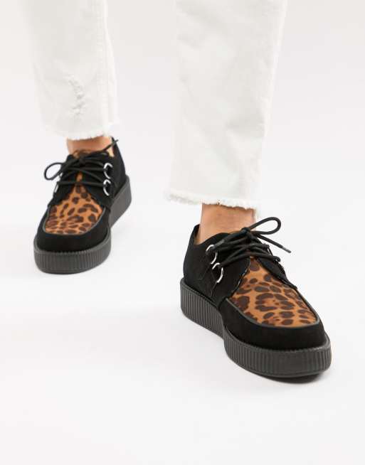 Creepers come in all kinds of styles prints and colours from leopard print creepers to classic black creepers all white creepers to metallic or red creepers we have them all online at mr shoes. Tuk leopard print creepers size 4.