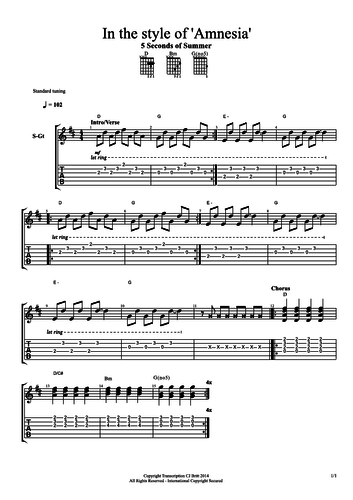 In The Style Of Amnesia By 5 Seconds Of Summer Easy Guitar www.tes.com